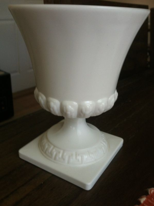 Title (ebay affiliate link): VINTAGE E.O.BRODY GREEK URN WHITE MILK GLASS VASE/PLANTER ON PEDESTRIAL