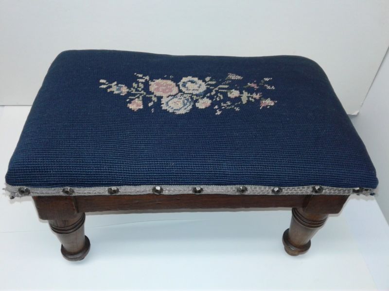 Title (ebay affiliate link): Victorian Antique Needlepoint Footstool Footrest Blue Pink Floral Foot Stool