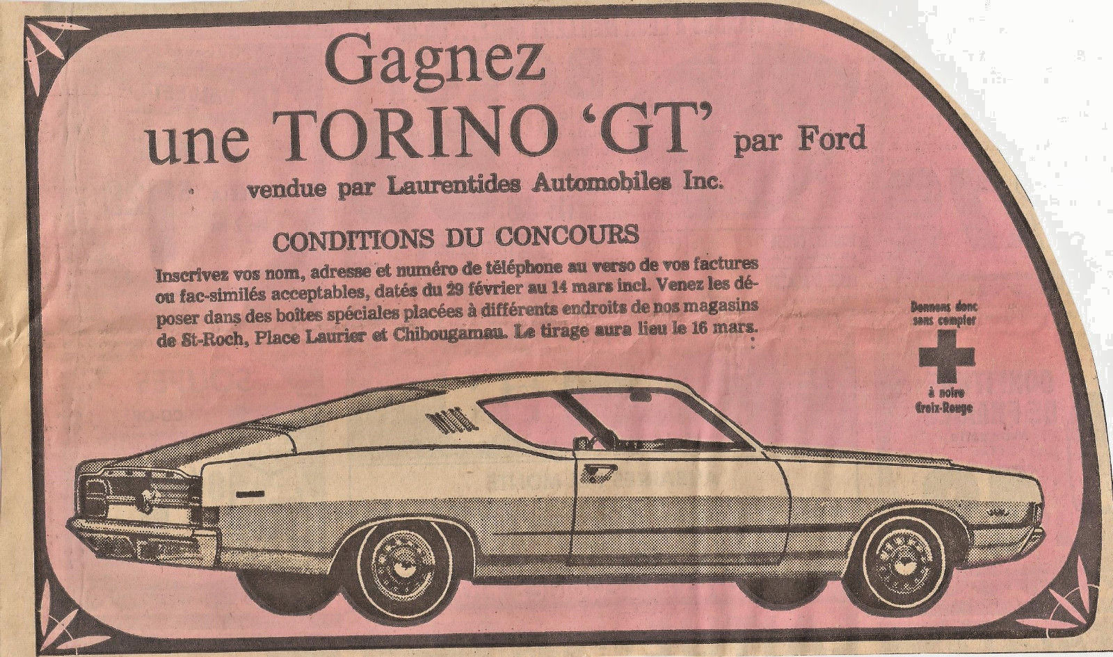 Title (ebay affiliate link): 1968 FORD TORINO GT AUTOMOBILE ORIGINAL AD IN FRENCH