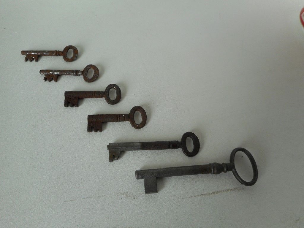 6 SMALL ANTIQUE METAL KEYS for WOODEN BOXES WRITING SLOPES FURNITURE