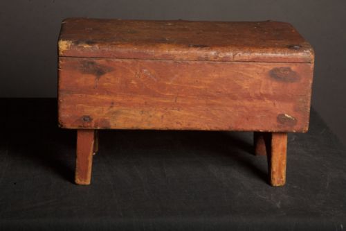 Title (ebay affiliate link): Antique Primitive Wooden Footstool Dark Red Paint Late 1800s Square Nails Farm
