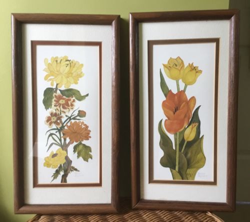 Title (ebay affiliate link): Vintage Framed Art by Beuly Floral Flowers Orange Yellow Set 12.75" 6.75"