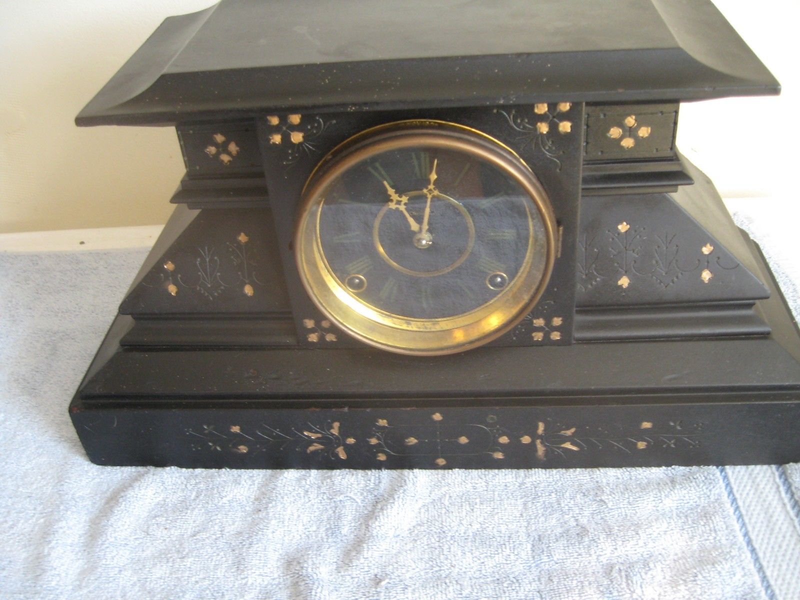 Title (ebay affiliate link): Antique E. Ingraham Black Mantel / Shelf Clock 1880 (Working)