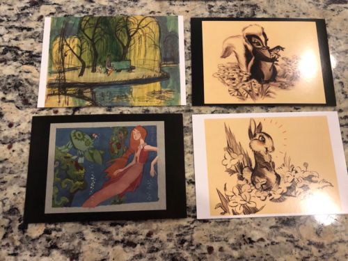 Title (ebay affiliate link): 4 Vintage Collectible Postcard Concept Art Disney Movies Bambi Mermaid Dalmation