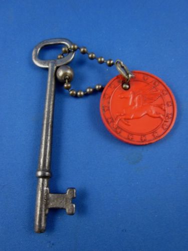 Title (ebay affiliate link): Vintage Red Plastic Pegasus Mobil Oil Keychain with Skeleton Key