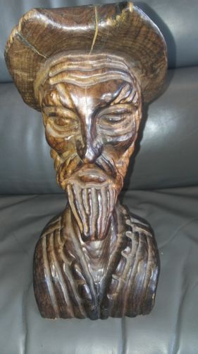 Vintage Wood Carved Folk Art Don Quixote Bust Statue