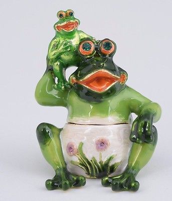 Title (ebay affiliate link): Frog trinket box by Keren Kopal Austrian Crystal Jewelry box Faberge