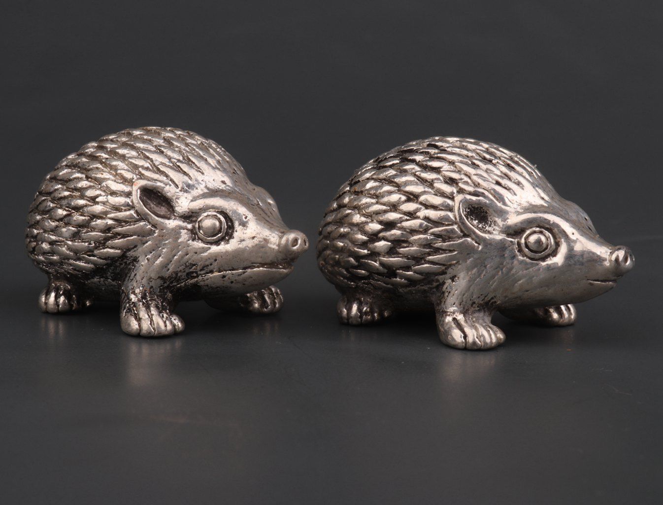 Title (ebay affiliate link): 2 Copper Plated Silver Animal Hedgehog Statue Figurine Good Luck Solid Casting