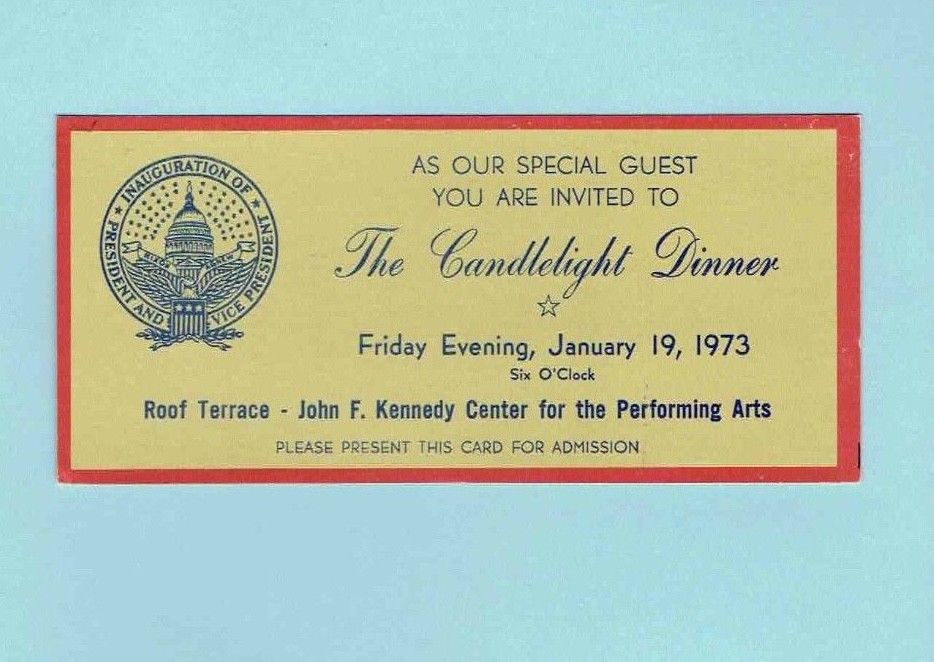 Title (ebay affiliate link): 1973 Inauguration Candlelight Dinner Ticket for President and Vice President