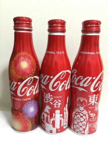 Title (ebay affiliate link): F/S Coca Cola Japan Limited Empty Slim Bottles Set of 3 Tokyo Shibuya Hanabi