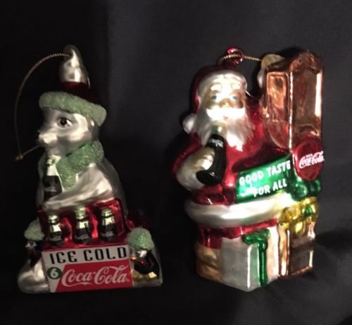 Title (ebay affiliate link): 2 Coca Cola Pearlescent Glass Christmas Ornaments 2003 Polar Bear and Santa