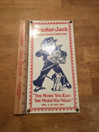 Title (ebay affiliate link): Cracker Jack Porcelain Enameled Metal Advertising Sign Vintage Ande Rooney USA