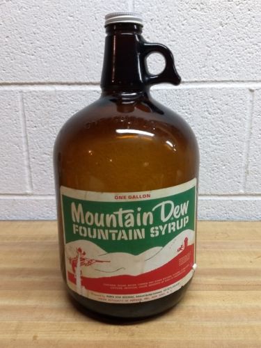 Title (ebay affiliate link): Vintage Mountain Dew Fiuntain Syrup One Gallon Jug