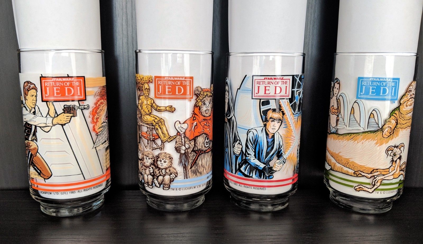 Vintage Star Wars Return of the JEDI Glasses Set of 4 Coca Cola Burger King 1983