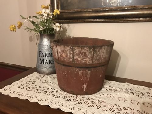 Title (ebay affiliate link): PRIMATIVE SHAKER WOOD STAVED BUCKET ORIGINAL RED PAINT AND HANGER