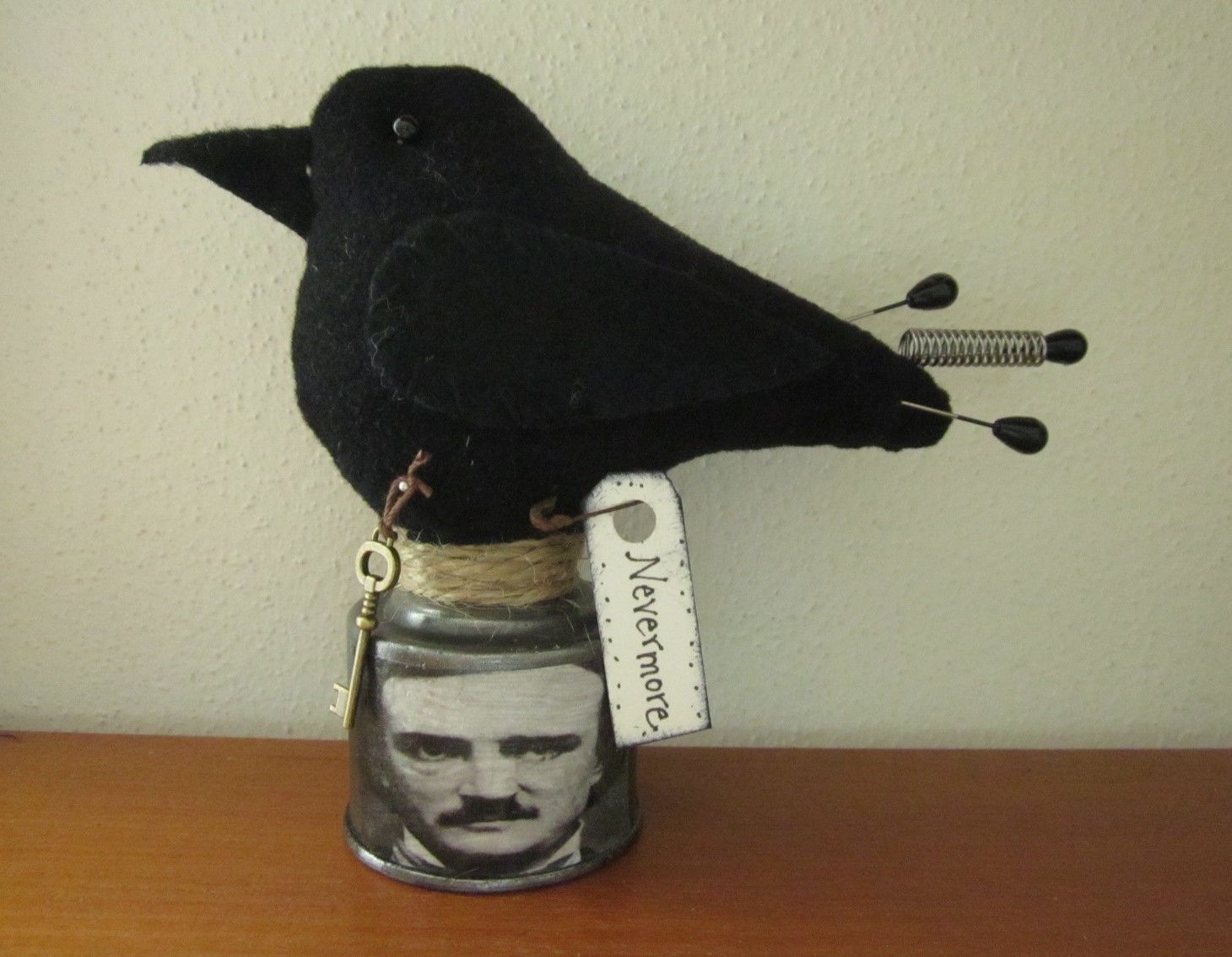 Title (ebay affiliate link): PRIMITIVE CROW BLACK BIRD OIL CAN EDGAR ALLAN POE MAKE DO PIN CUSHION PFATT