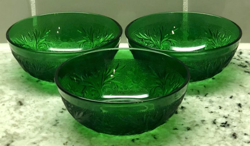 Title (ebay affiliate link): Anchor Hocking Forrest Green Sandwich Pattern Depression Cereal Bowls Set Of 3