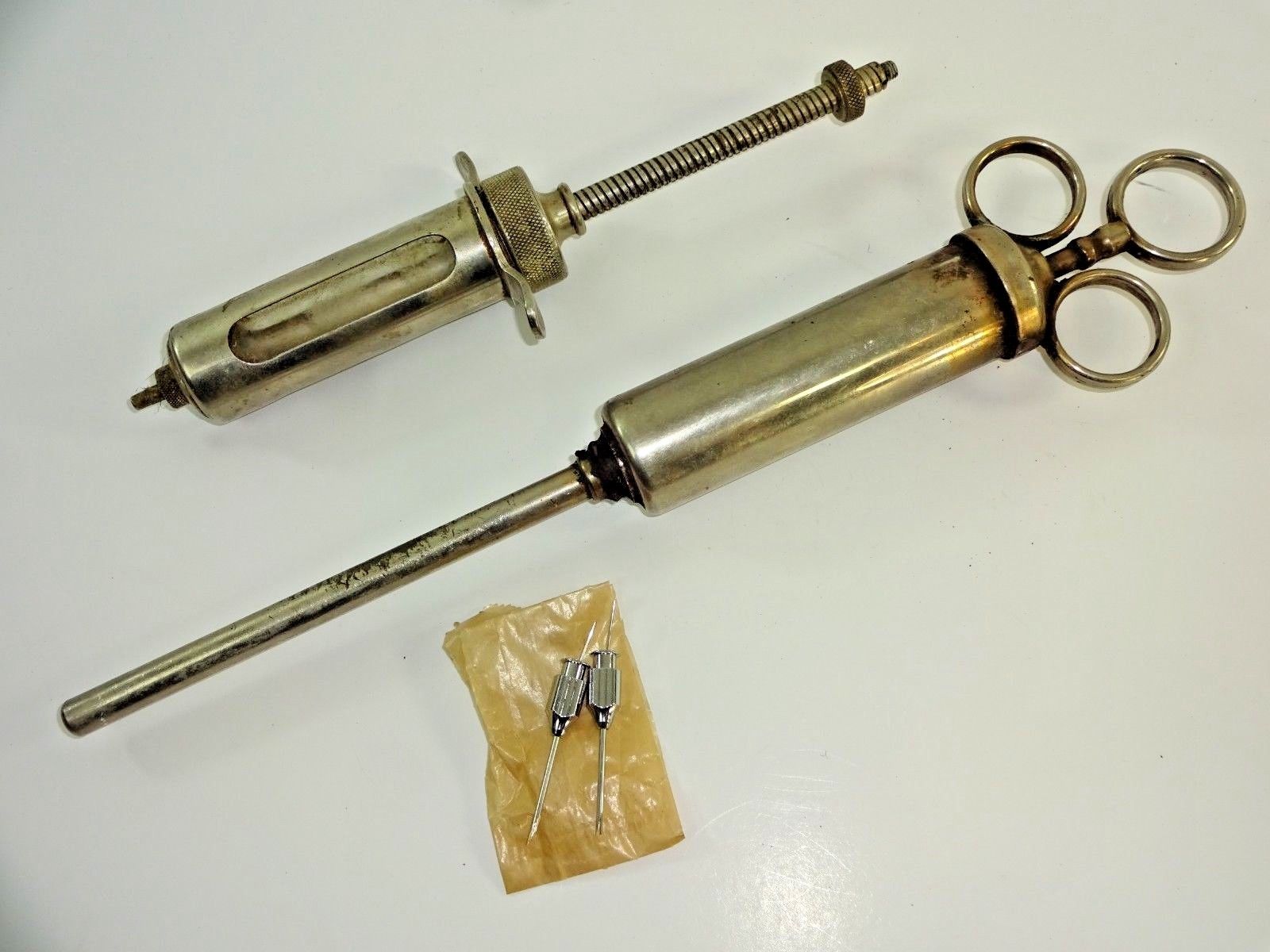 Antique Vintage Medical Stainless Steel & Glass UNBRANDED Plunger Syringes