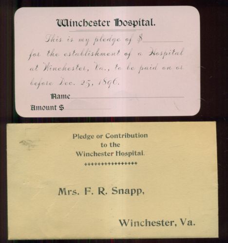 Title (ebay affiliate link): 1896 Winchester,VA - Winchester Hospital Establishment Pledge Card w/Envelope