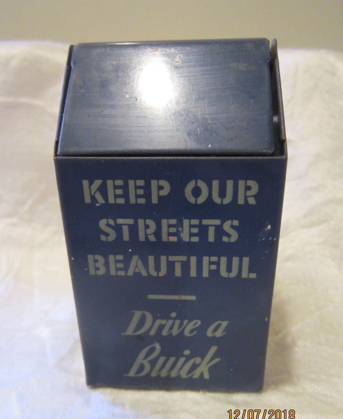 Title (ebay affiliate link): Old "Drive a Buick" Metal Trash Can Counter Display