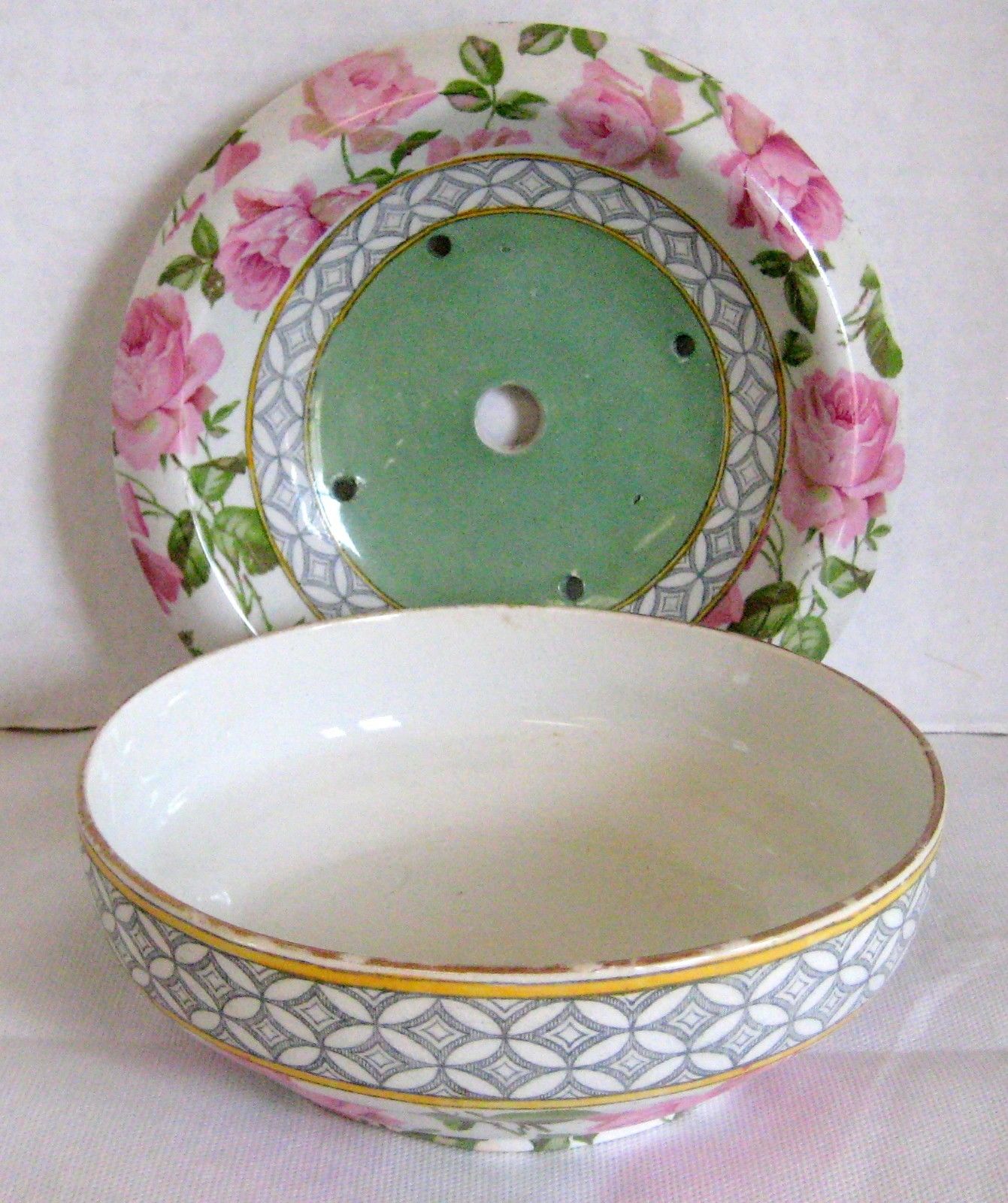 Antique Bridgwood Porcelain Berry Bowl andUnderplate - Pink Roses