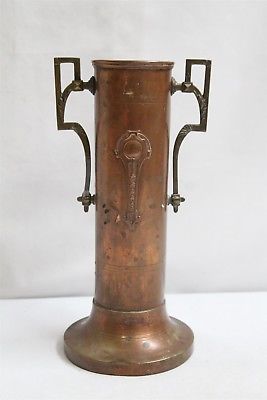 Title (ebay affiliate link): 19c German 2 Handled Stylized Jugendstil Door Knocker Arts Crafts Brass Vase
