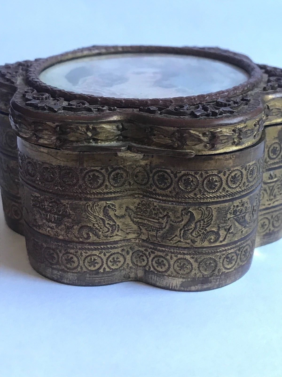 VICTORIAN BRONZE HAND PAJNTED WOMAN PORTRAIT POWDER COMPACT
