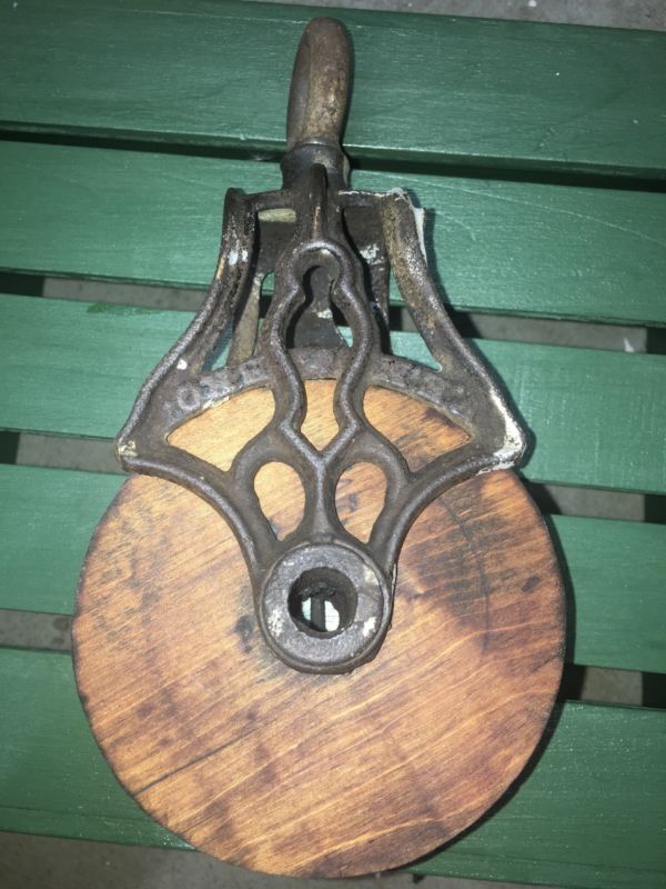 Title (ebay affiliate link): Vintage F.E.M & Bros Ashland Ohio Cast Iron Wood Barn Hay Pulley