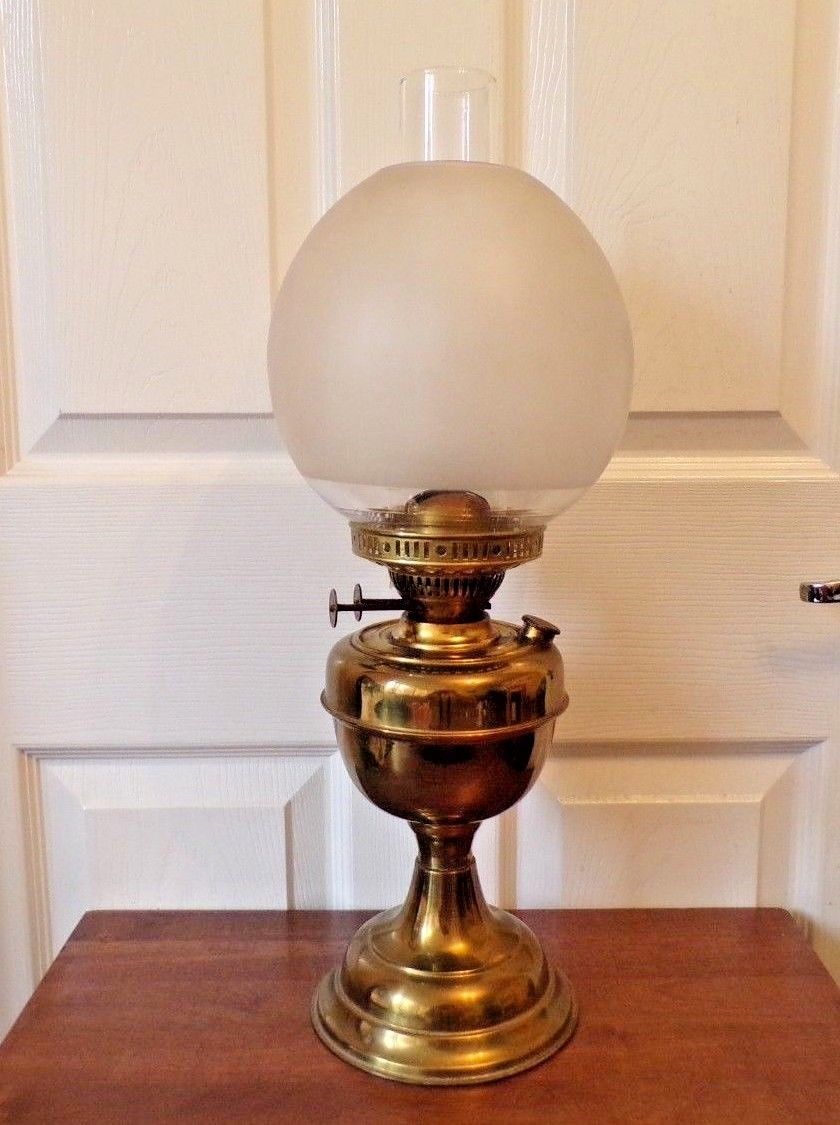 Title (ebay affiliate link): A vintage brass oil lamp with frosted shade Duplex twin burner working order
