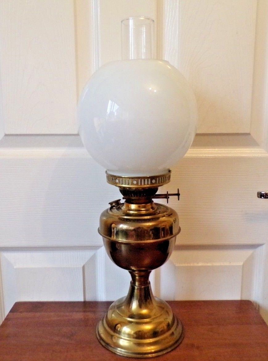Title (ebay affiliate link): A vintage brass oil lamp with white shade Duplex twin burner working order