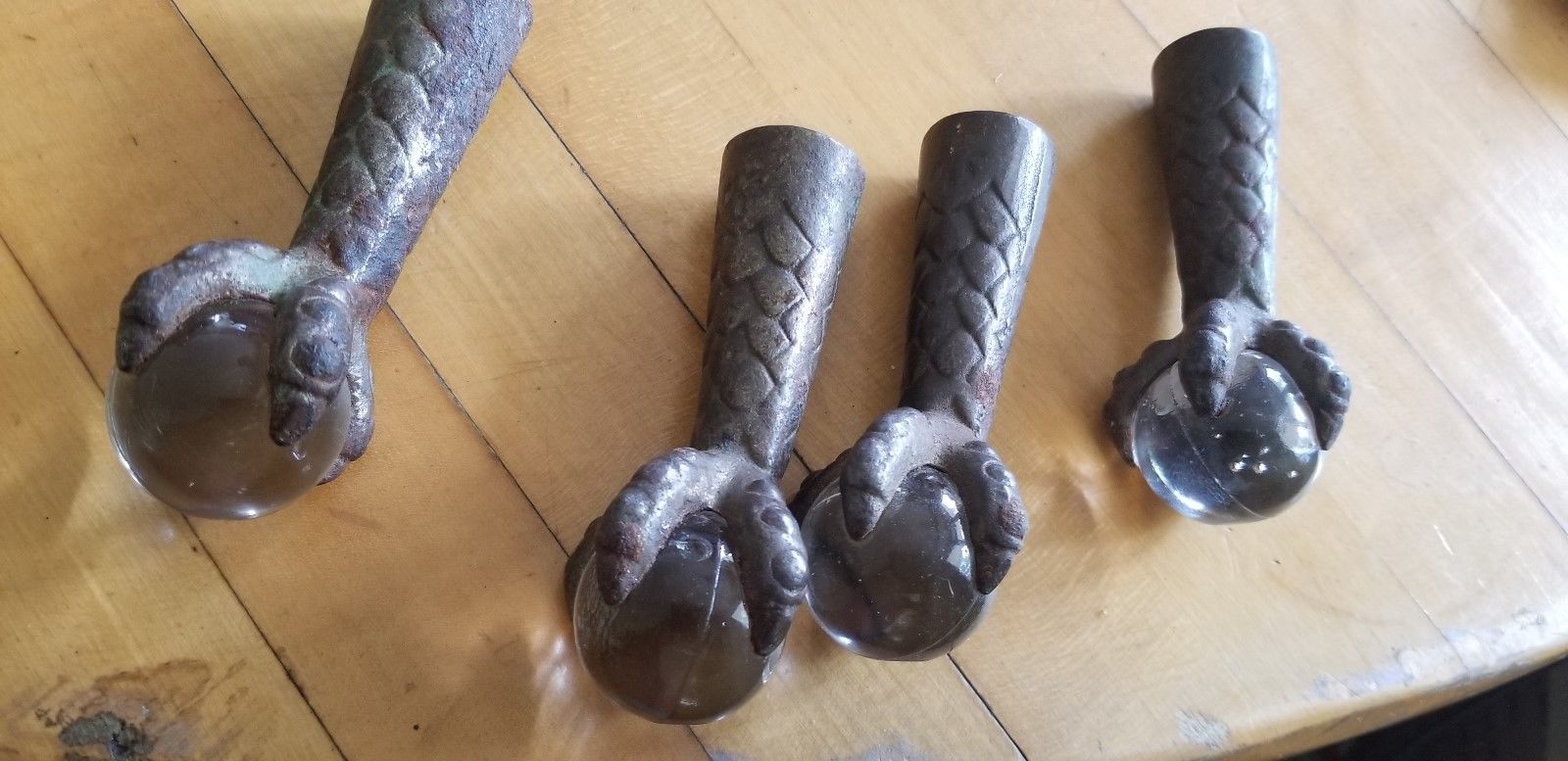 Title (ebay affiliate link): Set of Four Antique Cast Iron Brass Finish Glass Ball Furniture Eagle Claw Feet