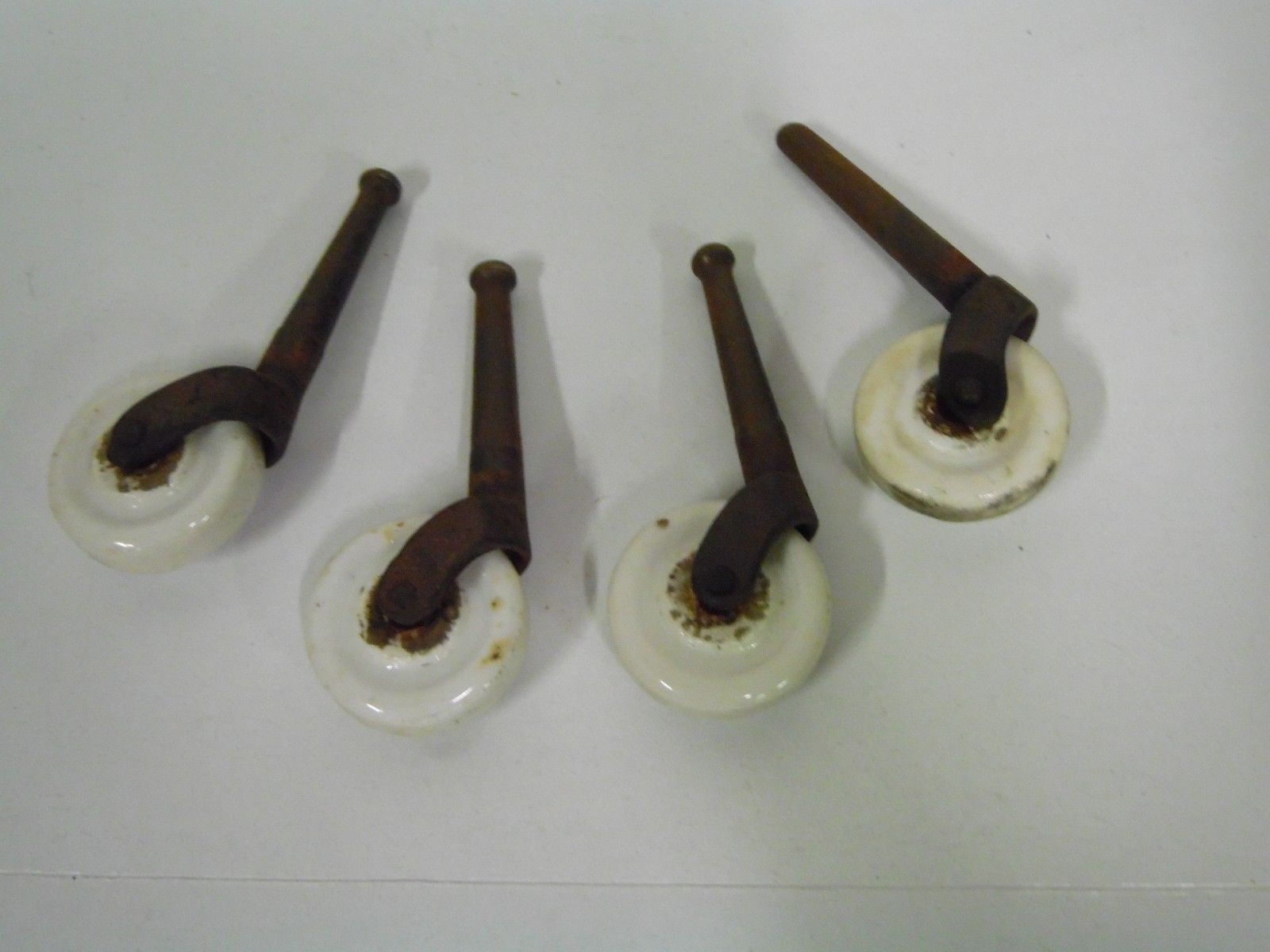 Antique Furniture Caster Wheels Porcelain/Iron Vintage Salvage SET OF 4
