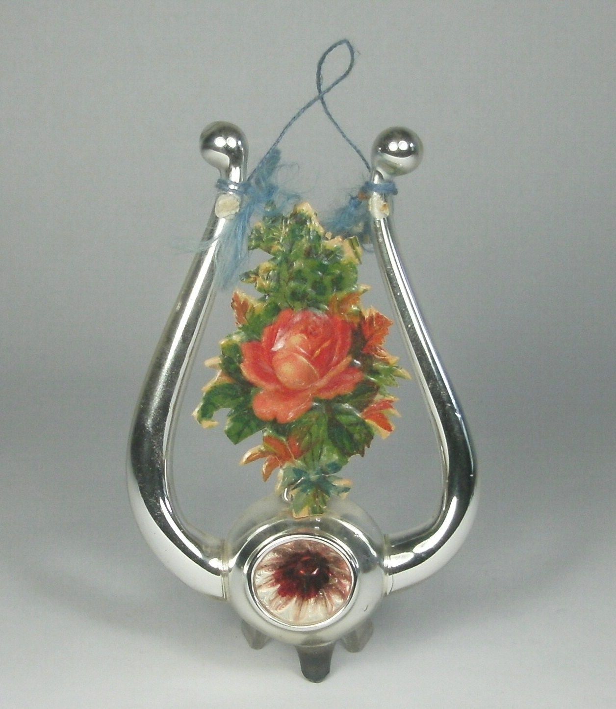 Antique Blown MERCURY Glass Harp Scrap Christmas Tree Ornaments