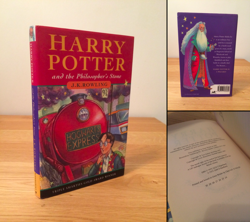 Title (ebay affiliate link): Harry Potter and the Philosopher''s Stone JK Rowling 24th Printing Bloomsbury HB