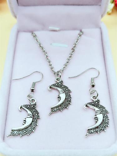 1 set of Antique Silver earring Moon Smile necklace fashion Earring Pendant @02