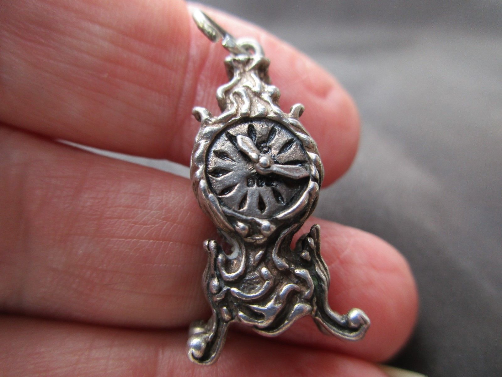 Title (ebay affiliate link): ANTIQUE VINTAGE SCOTTISH STERLING SILVER MINIATURE CLOCK FOB CHARM PENDANT OLD
