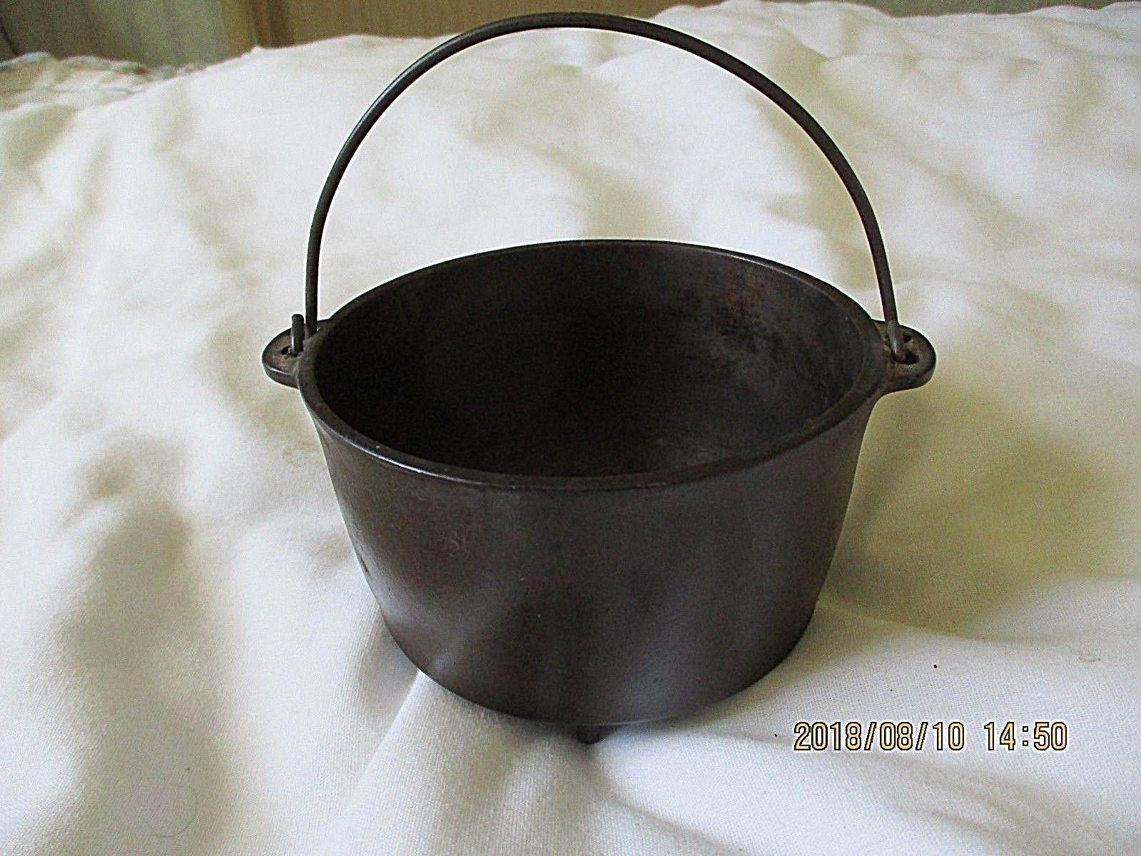 Title (ebay affiliate link): SMALL WAGNER CAST IRON KETTLE WITH HANDLE, 3 PEDESTAL LEGS, LIGHT RUST, SAMPLE?