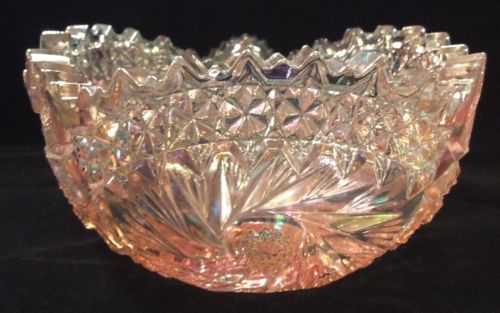 Title (ebay affiliate link): Amazing Carnival Glass Bowl Candy Dish Cosmos Star Diamond Pink Rose Starburst