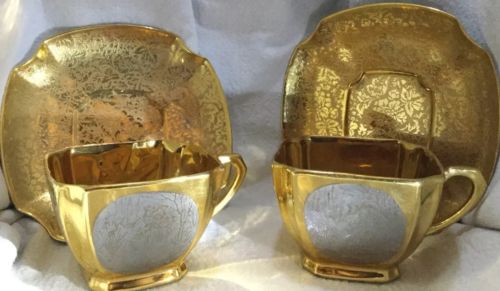 24K GOLD & Platinum Covered Teacup & Saucer Set