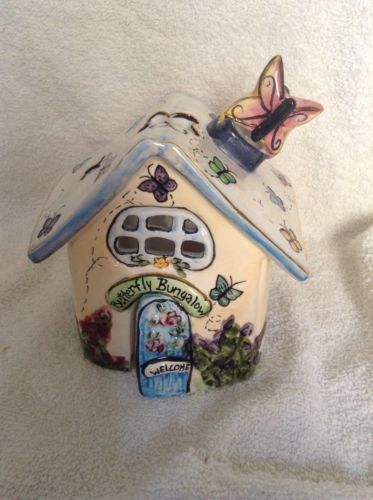 Title (ebay affiliate link): Blue Sky Clayworks Butterfly Bungalow Tea Light, 2002, Heather Goldmine