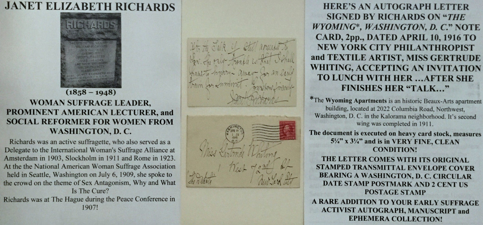 Title (ebay affiliate link): WOMENS SUFFRAGE LEADER SOCIAL REFORMER SEX GENDER BIAS ACTIVIST LETTER SIGNED VF