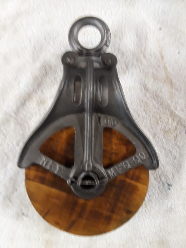 Title (ebay affiliate link): Antique NEY MFG Co. Cast Iron & Wood Barn Pulley.