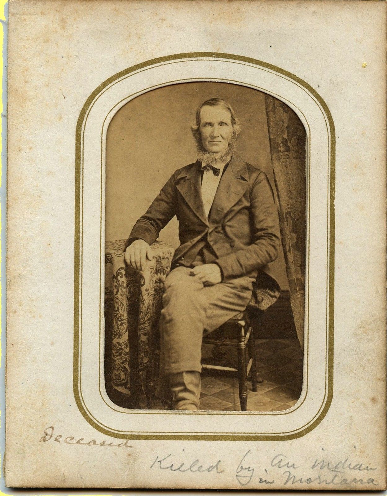 ~1860s No ID CDV in an Album Page, "Man Killed by an Indian in Montana"