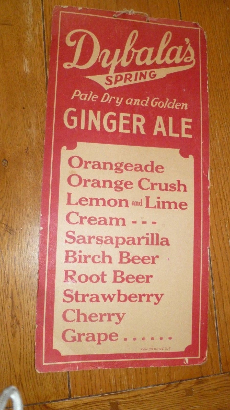Dybala''s Spring Ginger Ale Soda Advertising Store Cardboard Sign Vintage Early t