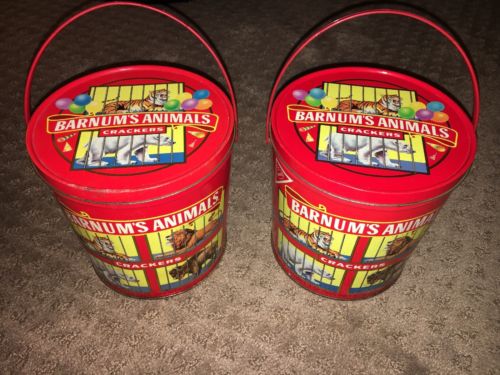 Old Vintage Advertising Ad Barnum''s Animals Crackers Litho Metal Tin Can Buckets