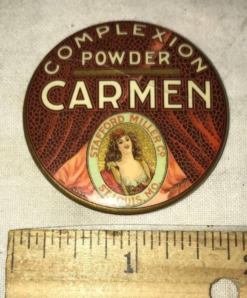 Title (ebay affiliate link): ANTIQUE CELLULOID POCKET MIRROR CARMEN COMPLEXION POWDER ST LOUIS MO VINTAGE OLD