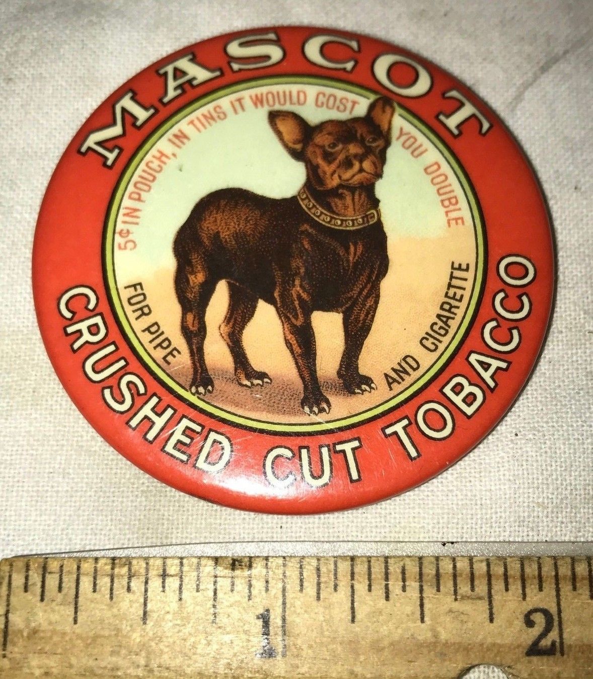 ANTIQUE CELLULOID POCKET MIRROR MASCOT CRUSHED CUT TOBACCO BOSTON TERRIER DOG