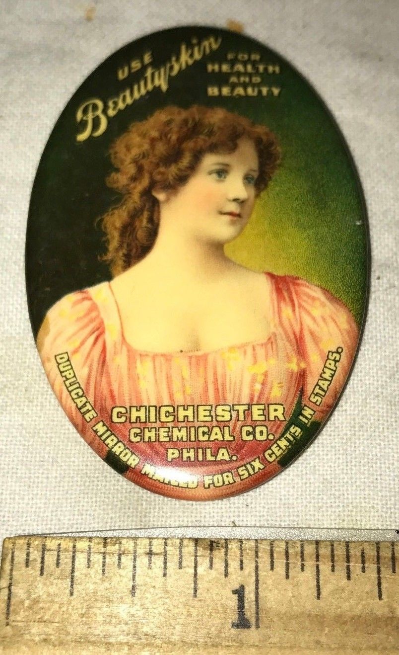 ANTIQUE CELLULOID POCKET MIRROR CHICHESTER MEDICINE BEAUTY SKIN PHILADELPHIA PA