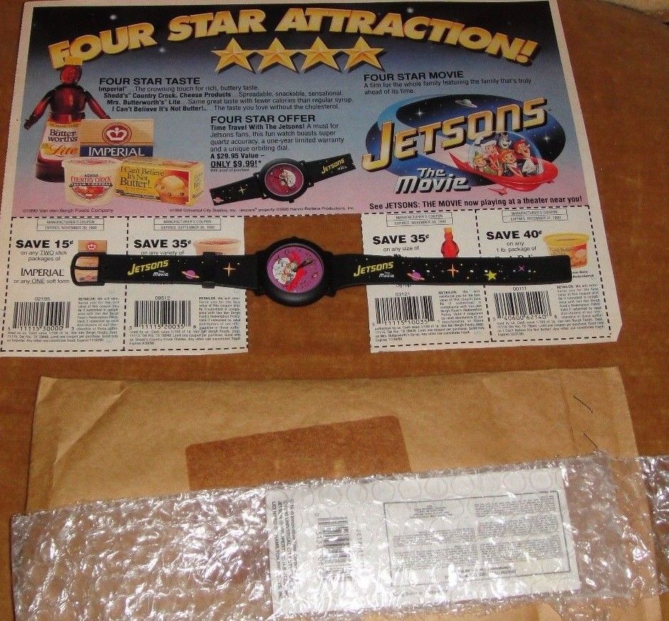 Title (ebay affiliate link): Jetsons the Movie Watch Cartoon Premium Mail Order Offer 1990 MIB