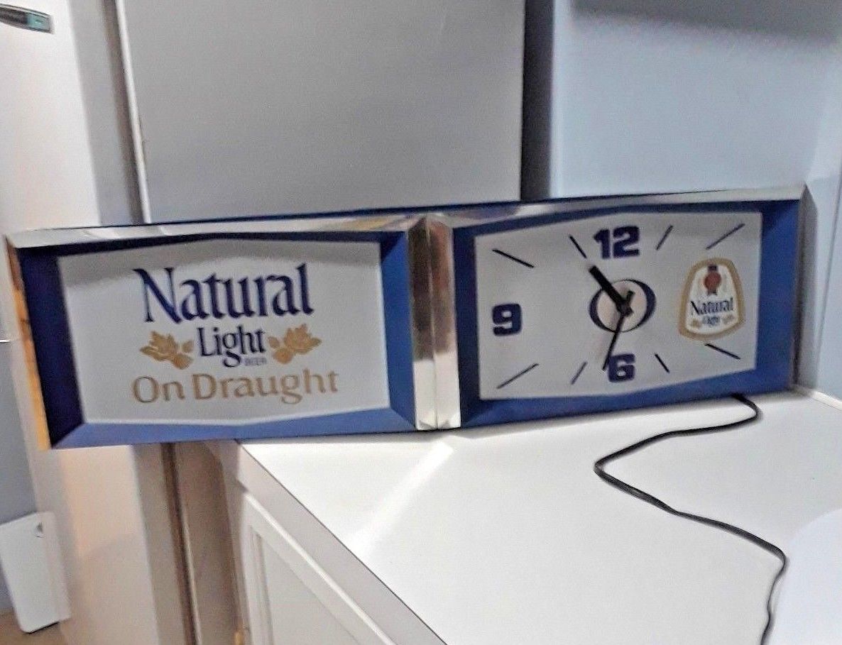Vintage Original Natural Light Beer on Draught 36" Lighted Clock Sign..RARE